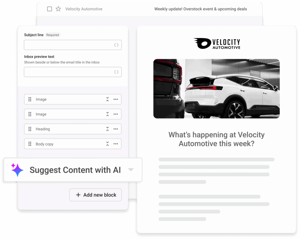 Effortlessly create and send customized texts and emails that engage customers, nurture leads, and boost sales with an AI-enhanced user-friendly campaign builder.